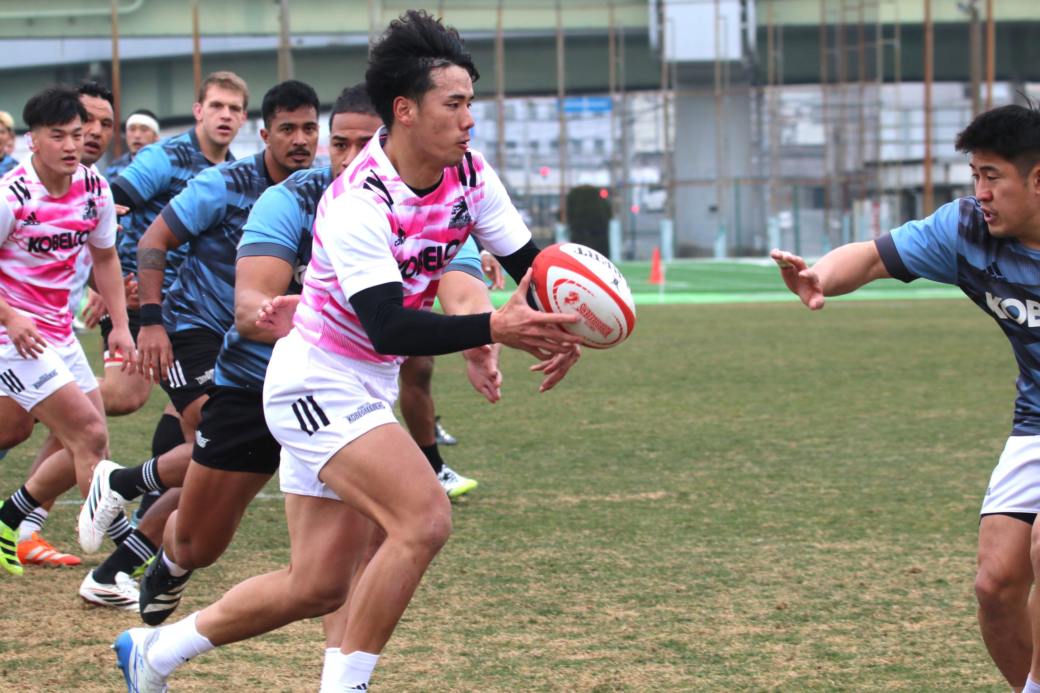 5勝1敗で3位の神戸Sは、バイウィークを経て、3勝3敗で6位の静岡BRと対戦する。昨季の最終戦ではスクラムを圧倒され敗れるも、プレーオフ準々決勝では強みを出させずスクラムで優位に立ち勝利した。今節もスクラムはキーポイントとなる。さらに今季、BKには東京オリンピックで7人制フィジー代表の金メダル獲得に貢献したWTBラドラドラが加入。オフロードパスや縦への突破は脅威だ。静岡BRは前節のトヨタVで、破壊力あるアタックを見せて7トライを奪って43-19で快勝。一方、神戸Sは横浜E戦で最終盤に3トライを許し、38-32で勝利はしたものの課題が残る試合となった。これから静岡BR戦をスタートに、東京BL、埼玉WK、浦安DRと強豪との戦いが続く。今後に向けて勢いをつけるための大事な一戦に、李が第1節以来の『10番』に、FBにはアーリーエントリーの上ノ坊が起用された。前節の反省から80分間集中力を切らさずにプレーし勝利することはもちろん、リーグワンデビューのUTB上ノ坊や21歳のCTBイオアサといった若手の躍動にも期待してほしい。 (取材日:2月5日)